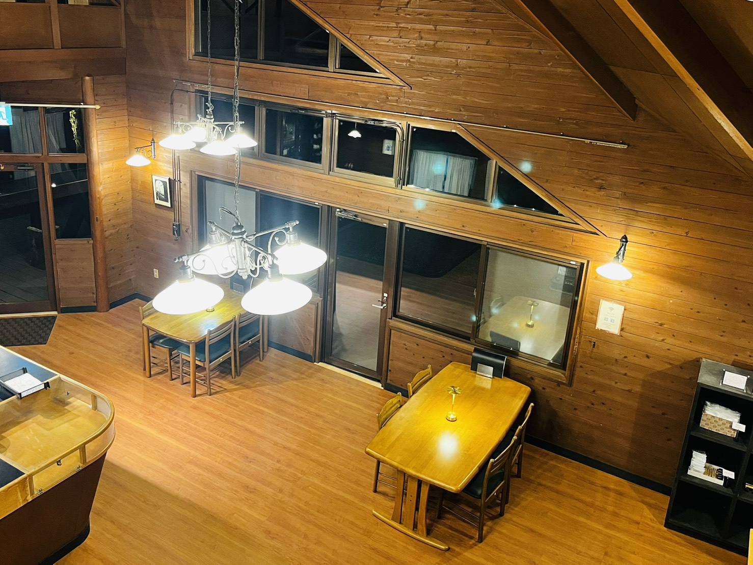 吹き抜けの開放感と木の温もりが、お客様を優しく迎え入れます。天井まで届く大きな吹き抜けが印象的なエントランス。自然な風合いを大切にした和モダンの空間で、これから始まる特別な旅への期待に胸を膨らませてください。