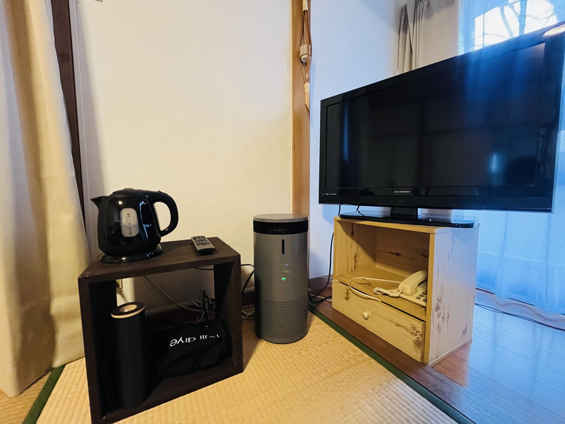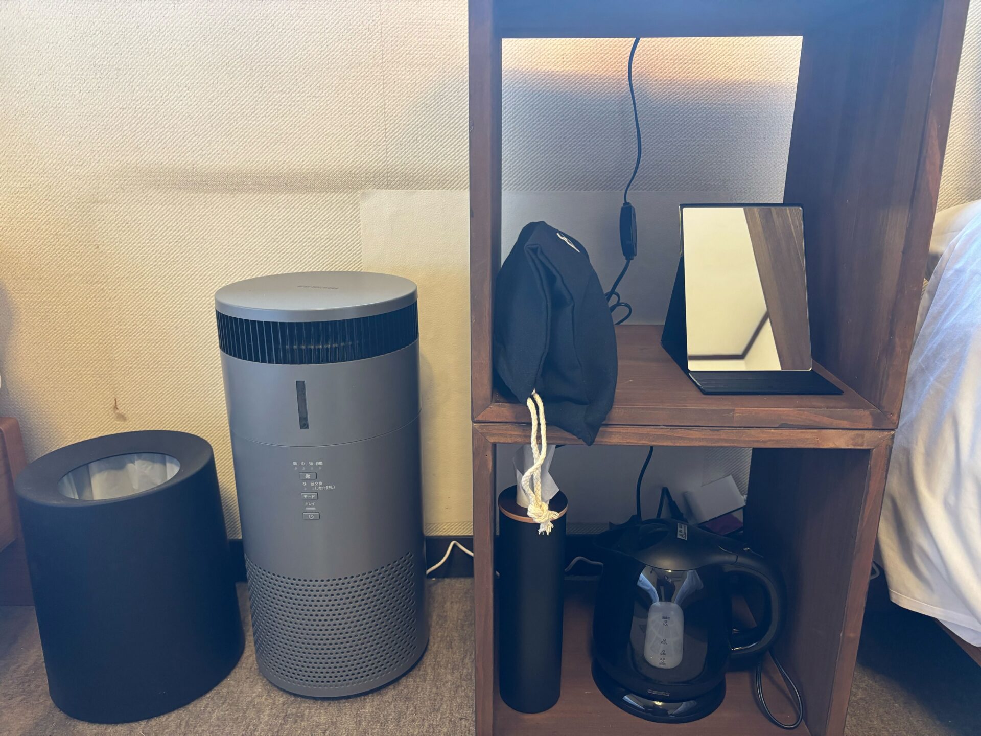 お部屋にはエアコン・加湿器付き空気清浄機のほか